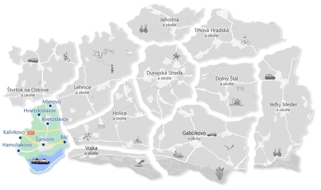 (Šamorín, Hamuliakovo, Kalinkovo, Kvetoslavov, Hviezdoslavov, Mierovo, Báč)